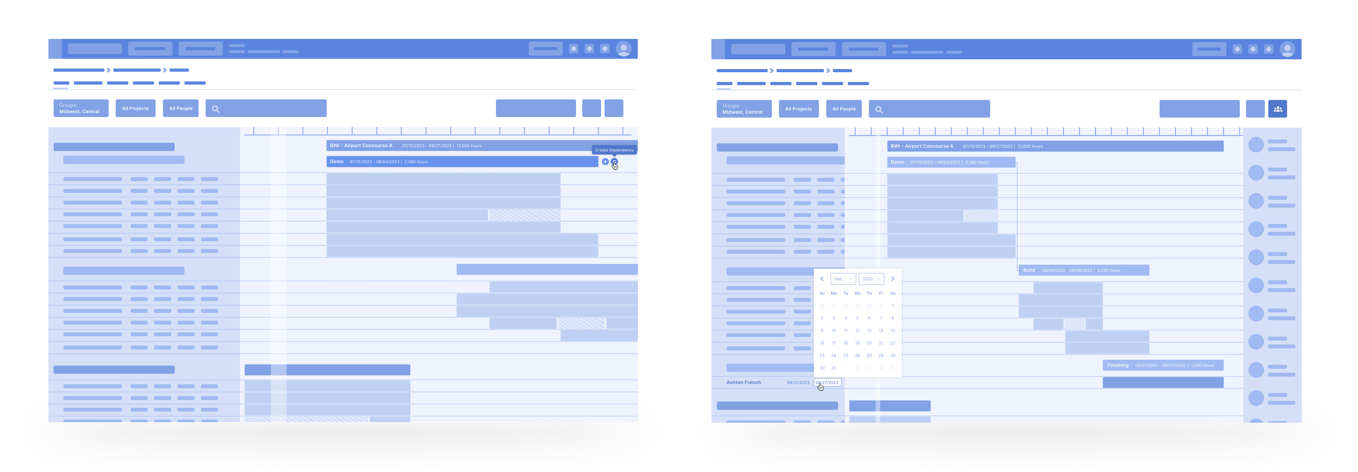 The improved gannt experience addressed customer pain points with interactive drag and drop functionality, expanded timeline views, and bulk actions.