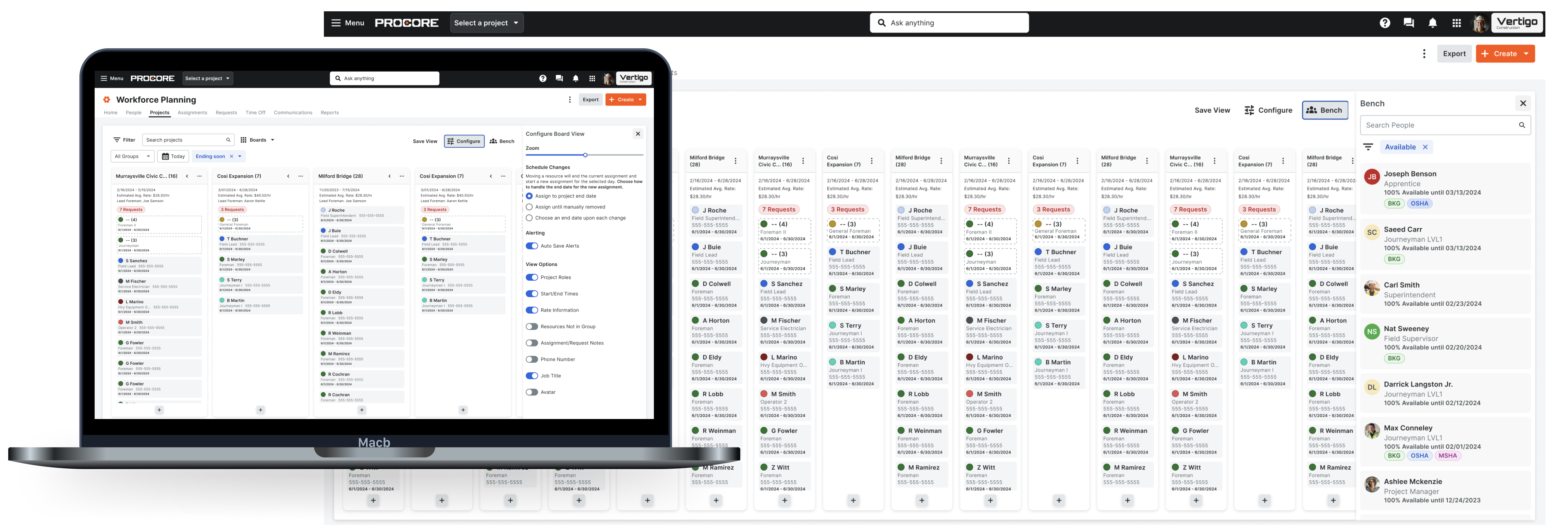 A scalable board view was implemented to give customers premium flexibility when scheduling large workforces across projects.